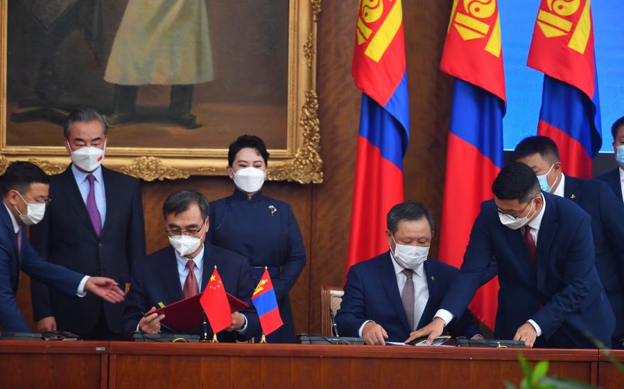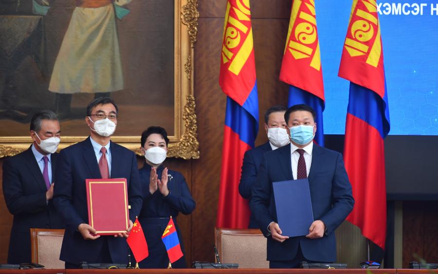 Улаанбаатар /МОНЦАМЭ/. Бүгд Найрамдах Хятад Ард Улсын Төрийн зөвлөлийн гишүүн, Гадаад хэргийн сайд Ван И-гийн Монгол Улсад хийж буй албан ёсны айлчлалын хүрээнд Гашуунсухайт-Ганцмод боомт, хил дамнасан төмөр замын холболтын тухай харилцан ойлголцлын санамж бичигт хоёр тал гарын үсэг зурлаа.