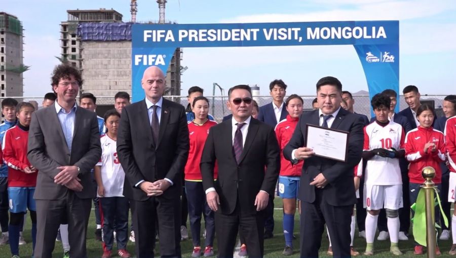 -ОУХБХ /ФИФА/-ны ерөнхийлөгч Жанни Инфантино 2019 онд Монголд ирж Яармагт барьсан 115 м х 85 м хэмжээтэй, А зэрэглэлийн тэмцээний хөлбөмбөгийн талбайн нээлтийн ёслолд оролцсон. Энэ талбайн нээлтийн ёслолд Монгол Улсын Ерөнхийлөгч Х.Баттулга оролцож байлаа. Тэр үеэр ерөнхийлөгч Жанни Инфантино МХБХ-г дэлхийн томоохон холбоодтой холбож өгнө гэж хэлсэн юм. Тэгээд л биднийг Английн хөлбөмбөгийн холбоотой харилцдаг, дэмжлэг авдаг болгосон. Тухайн үед Монгол Улсын Ерөнхийлөгчтэй ярилцаад битүү дээвэртэй стадион барихад хамтарч ажиллах асуудлыг хөндсөн юм. Монгол оронд өвлийн улирал 6 сар үргэлжилдэг болохоор тамирчид хөл бөмбөгөөс хөндийрдөг. Тэгэхээр бүтэн жилийн турш тасралтгүй хөл бөмбөг тоглодог хүмүүстэй биднийг харьцуулбал, бэлтгэлийн форм, дэглэм нь байнга алдагдаж тамирчдын амжилтад шууд сөргөөр нөлөөлж байгаа нь мэдээж юм.