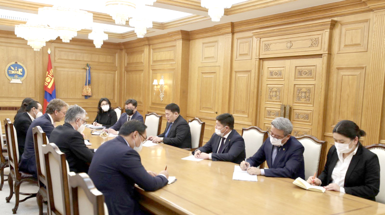 据政府新闻办消息, 蒙古国总理鲁·奥云额尔登就奥尤陶勒盖项目谈判事宜会见了力拓首席执行官石道成等代表。会议期间,总理鲁·奥云额尔登强调,要确保落实国家大呼拉尔关于“确保蒙古国在奥尤陶勒盖矿藏开发中的利益”的2019年第92号 决议,并需要在谈判中取得一定的成果。