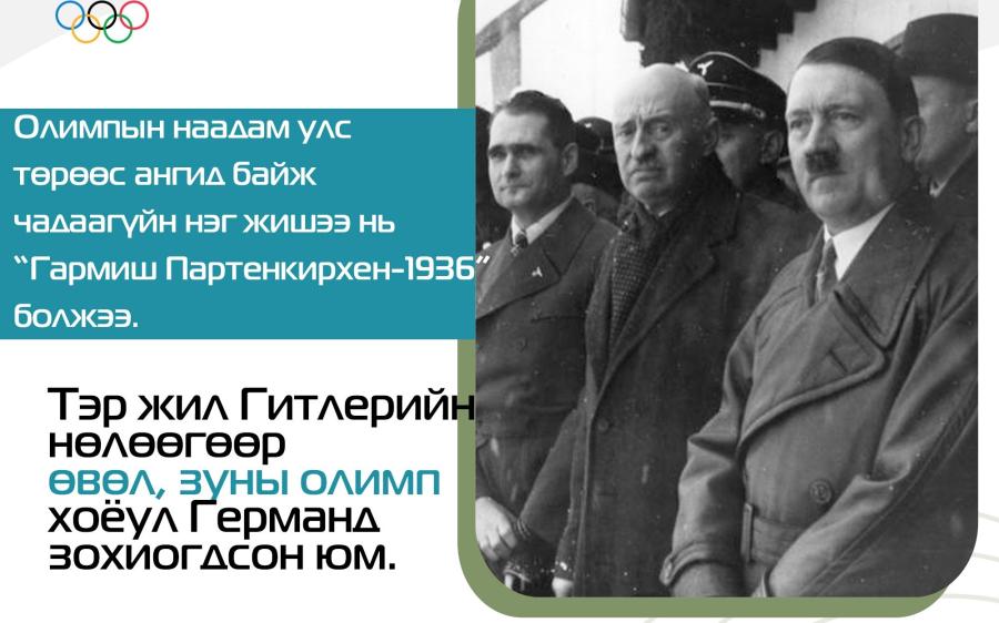 байж чадаагүйн нэг жишээ “Гармиш Партенкирхен-1936” өвлийн IV наадам болсон билээ.