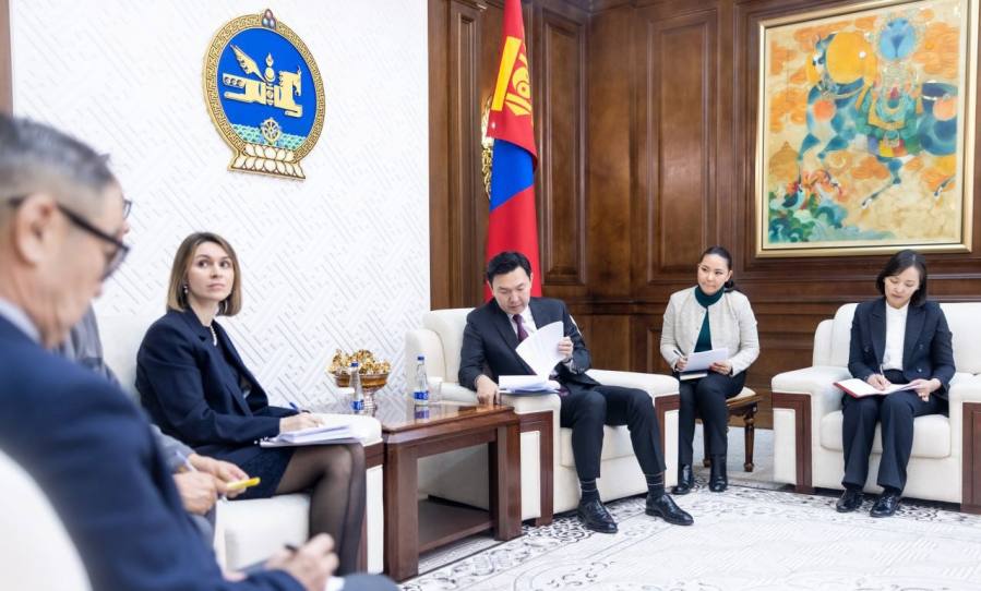 Улаанбаатар, 19 марта, 2026 /МОНЦАМЭ/. Председатель Великого Государственного Хурала Монголии (ВГХ) Ням-Осорын Учрал принял регионального директора Инициативы прозрачности добывающих отраслей (ИПДО) Оляну Валигуру.