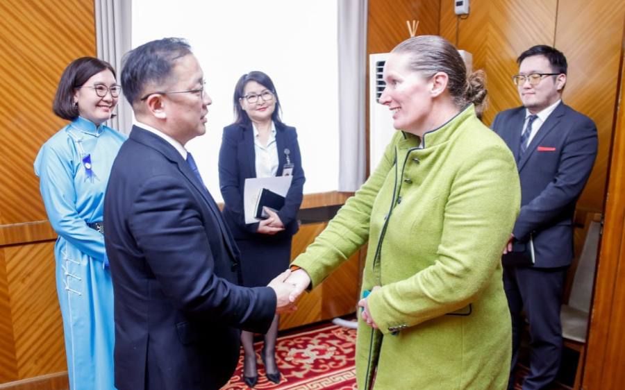 Улаанбаатар, 20 марта, 2026 /МОНЦАМЭ/. Члены Постоянного комитета Великого Государственного Хурала по вопросам окружающей среды, продовольствия и сельского хозяйства приняли делегацию Всемирного банка во главе с глобальным директором по вопросам изменения климата Валери Хики.