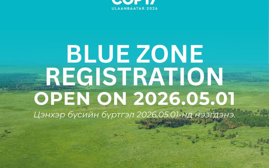 蒙通社乌兰巴托4月24日电,《联合国防治荒漠化公约》第十七次缔约方大会(COP17)“蓝区”参会人员注册将于2026年5月1日开启。