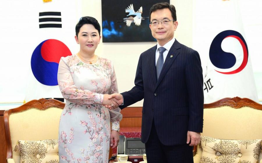 Ulaanbaatar/ MONTSAME/ In connection with the 4th meeting of Mongolia-Korea Intergovernmental Joint Committee to be held on June 28, Deputy Minister of Foreign Affairs B.Battsetseg met with the First Vice Minister of Foreign Affairs of the Republic of Korea Cho Sei-young.