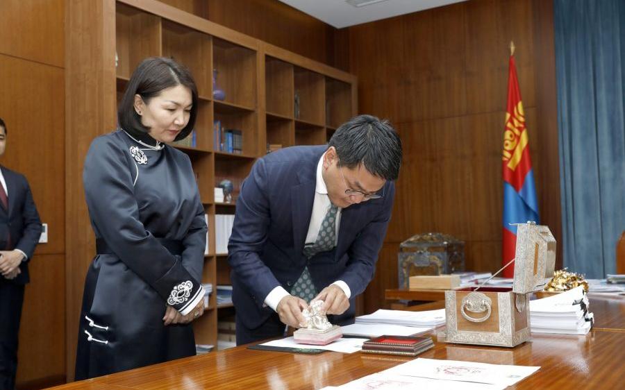 of the Great Ikh Khural of Mongolia, stamped the laws passed in 2019 with the State