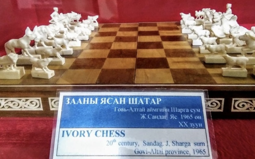 Говь-Алтай, 2025 оны 12 дугаар сарын 15 /МОНЦАМЭ/. Сийлбэрч О.Сандагийн урласан зааны ясан шатар Говь-Алтай аймгийн Орон нутаг судлах музейн ховор нандин үзмэрт тооцогддог.