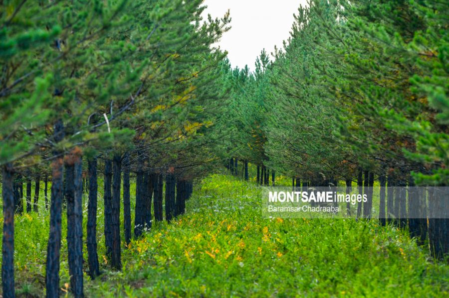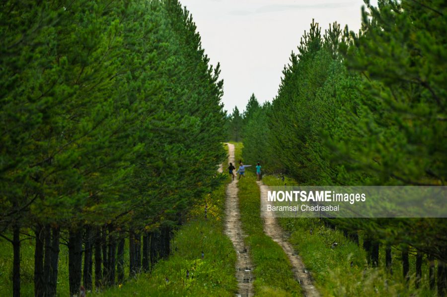 セレンゲ県のシャーマル村及びアルタンボラグ郡にまたがって位置するトジーン・ナルス(松林)。