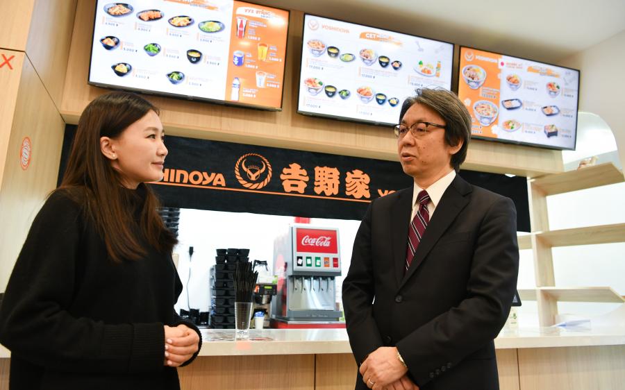 小林大使:総じて外食産業は新型コロナウイルス感染症の影響で大きな打撃を受けましたが、一方でテイクアウトの需要が伸びているとも聞いています。この難しい状況の中で、吉野家モンゴル店は何に最も留意されているのでしょうか。将来の目標とともに教えてください。