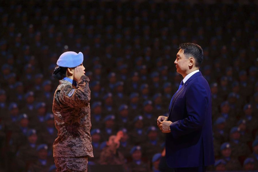 「モンゴル軍」としての名を世界に広めている数多くの平和維持要員の功績と献身は、モンゴル国の国際的な評価を高め、国家の安全保障政策とその実施において極めてな役割を果たしていると言及した。