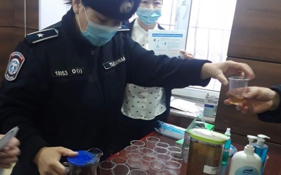 Түүнчлэн Цагдаагийн газрын төв байр, Эрүүлжүүлэх, саатуулах байр, шүүхийн байрны үүдэнд зориулалтын ариутгагч бодистой гишгүүрийг алба хаагчид, иргэдийн нүдэнд ил харагдах газар тавьсан аж.