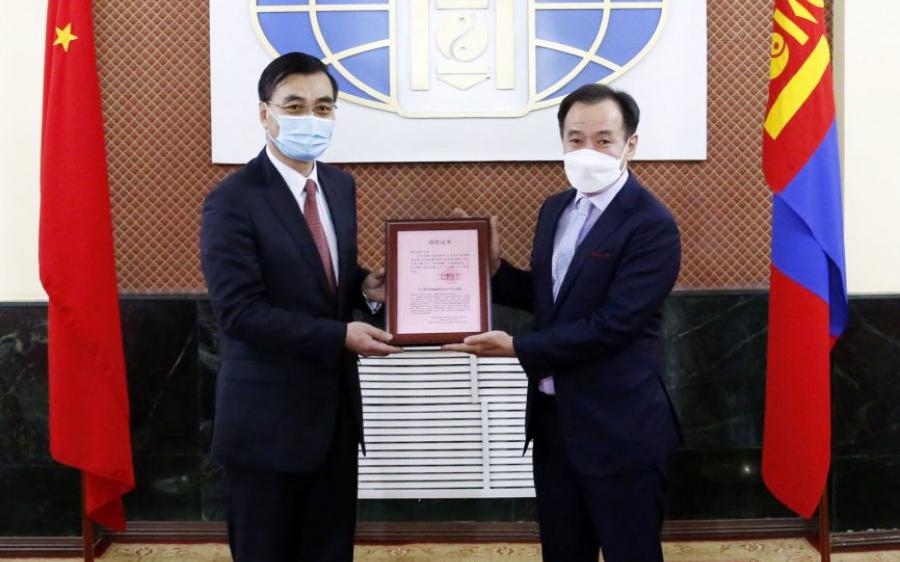 Улаанбаатар /МОНЦАМЭ/. БНХАУ-аас Монгол Улсад суугаа ЭСЯ, Монголд байнга оршин суудаг хятад иргэд болон “Хятад иргэдийн нийгэмлэг”-ээс Монгол Улсад "COVID-19" халдварын эсрэг хийж буй тэмцэлд тусламж болгож 126 сая 730 мянган төгрөг хандивлалаа.