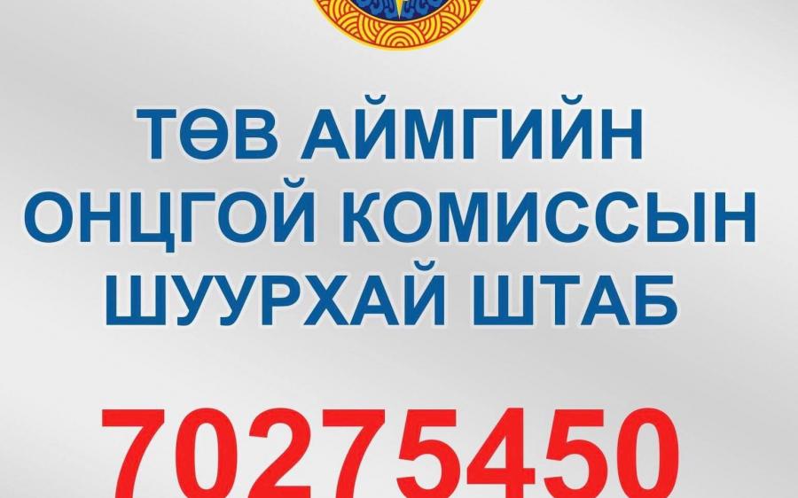 Тиймээс улс орон даяар бүх нийтийн бэлэн байдлыг хангаж ажиллаж байгаа тул шаардлагагүй тохиолдолд гадуур гарахгүй байх, хорио цээрийн дэглэмийг мөрдөж үнэн зөв мэдээлэл, зөвлөгөө болон коронавирусний халдварын бэлэн байдлын талаарх тушаал шийдвэрийн мэдээллийг аймгийн онцгой комиссын шуурхай штабын утас 70275450, Эрүүл мэндийн газрын хариуцлагатай жижүүр 70272225 утсаар холбогдон авахыг Аймгийн онцгой комиссын шуурхай штабаас анхаарууллаа.