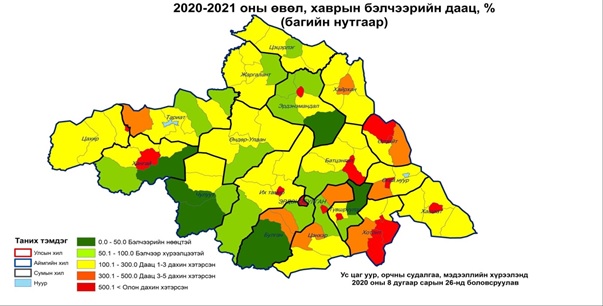 Үүнээс харахад бэлчээрийн даац олон дахин хэтэрч нийт нутгийн 80
