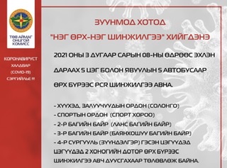 Зуунмод суманд бүртгэлтэй 4836 өрх болон түр оршин суугчдыг шинжилгээнд хамруулна