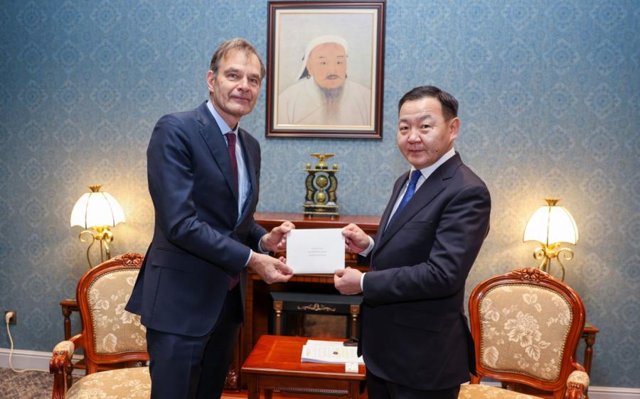 Улаанбаатар, 2024 оны дөрөвдүгээр сарын 1 /МОНЦАМЭ/. Гадаад харилцааны яамны Төрийн нарийн бичгийн дарга Н.Анхбаяр Нидерландын Хаант Улс, Бельгийн Хаант Улс, Люксембургийн Их Гүнт Улс, Румын Улсаас Монгол Улсад хавсран суух Элчин сайд нартай уулзаж, Итгэмжлэх жуух бичгийн хуулбарыг хүлээн авав.