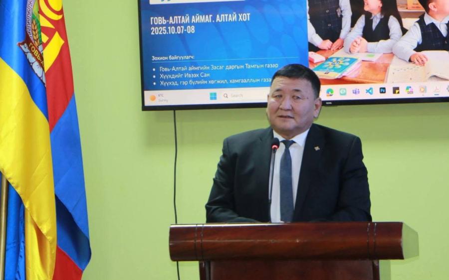 Говь-Алтай, 2025 оны аравдугаар сарын 7 /МОНЦАМЭ/. Говь-Алтай аймгийн Засаг дарга Г.Чинбатын ивээл дор “Хүүхэд хамгааллын асуудал, шийдэл” чуулга уулзалт Алтай хотноо болж байна.