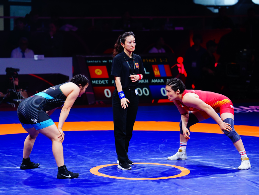 Харин 76 кг-д ДАШТ-ий мөнгөн медальт, олон улсын хэмжээний мастер Э.Даваанасан түрүүлж, төрийн дууллаа эгшиглүүллээ. Тэрбээр шигшээ барилдаанд эзэн орны бөх, ДАШТ-ий хошой мөнгө, нэг хүрэл медаль, ААШТ-ий гурван алт, гурван мөнгөн медальт, Азийн наадмын аварга Айпери Медет Кызыг 4:2-оор буулган авснаар Азийн аварга шалгаруулах тэмцээнд түрүүлсэн Монголын 10 дахь эмэгтэй тамирчин болов. Түүнчлэн ААШТ-ээс манай эмэгтэйчүүдийн 11 дэх алтан медалийг эх орондоо авчирлаа. Мөн тэрбээр ААШТ-ээс гурван медальтай болж байна. Өмнө нь 2022, 2023 онд дараалан хүрэл медаль хүртээд байсан юм. Ийнхүү чөлөөт бөхийн эмэгтэйчүүд Монголын төрийн дууллаа эгшиглүүлж, алтан соёмбот далбаагаа Бишкекийн тэнгэрт гурвантаа мандуулав.