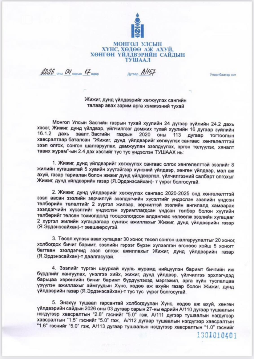 Улаанбаатар, 2026 оны дөрөвдүгээр сарын 21 /МОНЦАМЭ/. ЖДҮГ-аас үндсэн хөрөнгийн зээлийг 8, эргэлтийн хөрөнгийн зээлийг 5 жилийн хугацаатай олгож эхэллээ.