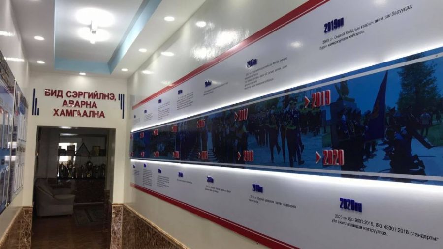 Онцгой байдлын байгууллагын түүхэн замнал, онцлогийг харуулсан самбартай болов