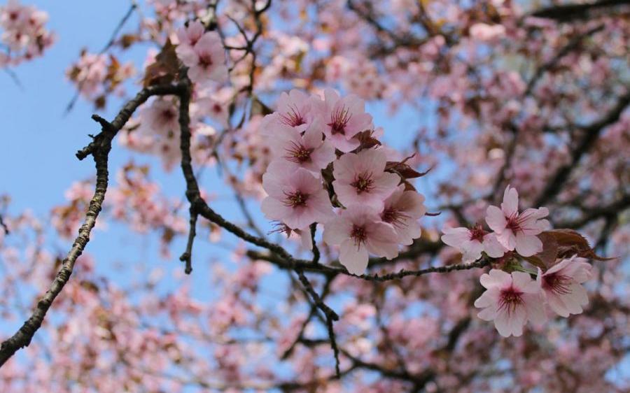 Цветение сакуры наступает весной еще до появления листьев, образуя крупные белые и розовые