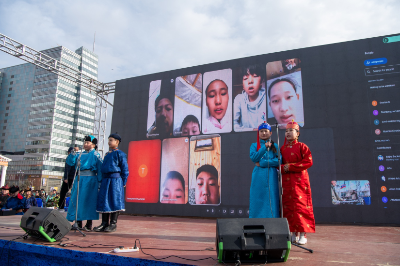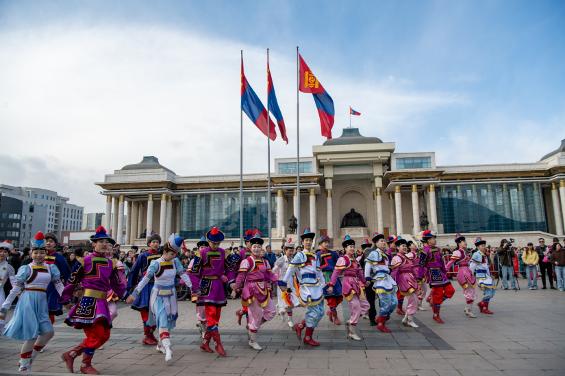 По традиции школьники прочитали стихотворение "Независимость" на центральной площади Улаанбаатара