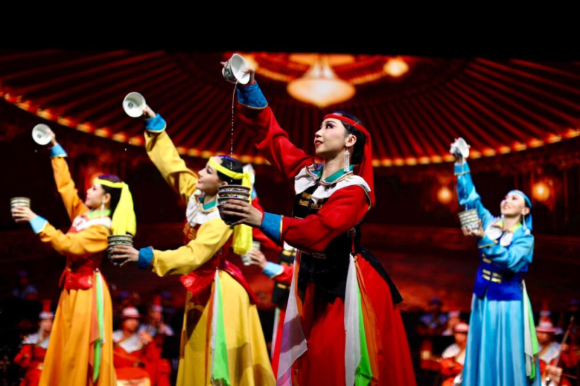 песни, а также номера, отражающие историю монгольского народа, танцы этнических