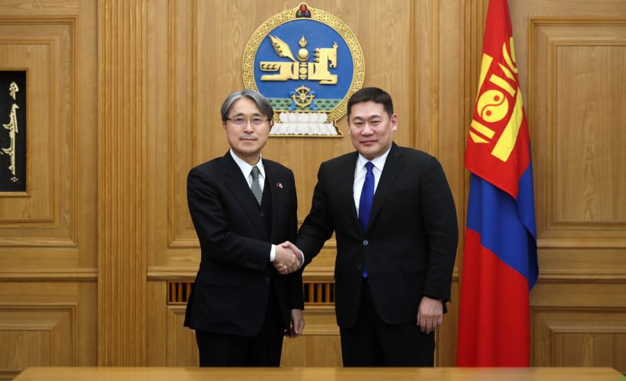 Улаанбаатар, 2024 оны хоёрдугаар сарын 8 /МОНЦАМЭ/. Монгол Улсын Ерөнхийлөгч Ухнаагийн Хүрэлсүх, гэргий Лувсандоржийн Болорцэцэг, ХБНГУ-ын Ерөнхийлөгч Франк-Вальтер Штайнмайэр, гэргий Элке Бюнденбендэр нар Төв аймгийн Зуунмод сумын дөрөвдүгээр багийн малчин, аймгийн алдарт уяач Б.Галбадрахын гэрт зочлов.