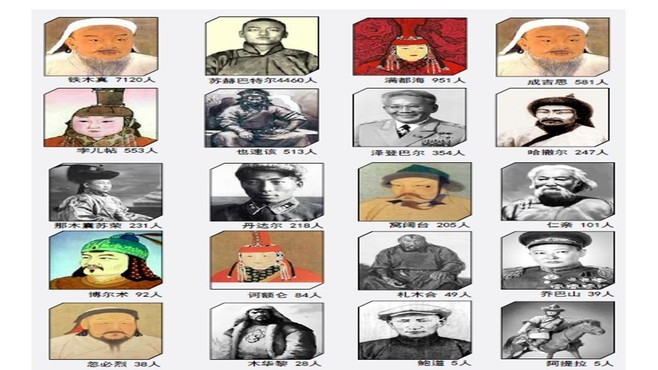 蒙古国国家统计局日前也公布以历史人物为名的人数。其中有: