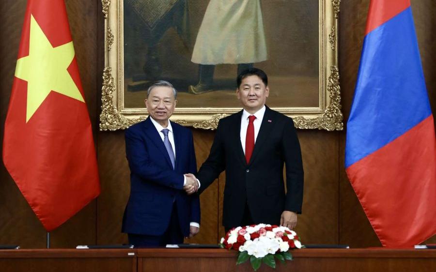 两国元首高度赞赏,双方在国际和地区组织框架内展开密切合作。同时,越方表示继续支持蒙古国将成为东南亚区域合作联盟对话伙伴,亚太经济合作组织等区域进程。此外,越方表示参加将于2026年在乌兰巴托举办的《联合国防治荒漠化公约》第十七次缔约方大会。