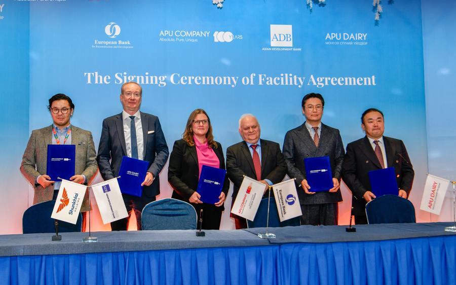 签署仪式期间,APU公司 执行经理策·额尔登毕利格 说,“APU公司和APU Dairy蒙古 奶制厂正在汇集国际金融机构的 联合发展基金,旨在适应牛奶和 乳制品产业的可持续、绿色和气 候变化。