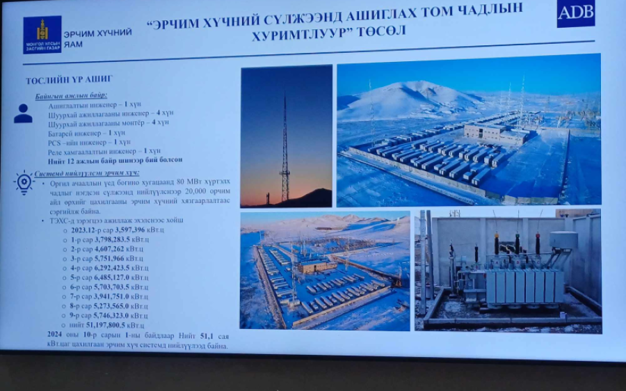 上述项目协调员兼工程师 巴·苏嘎日说,在蒙古国政 府和能源部用亚行优惠贷款 在增加偏远省份可再生能源 项目的框架内,建设并投入 使用太阳能电站,是第二大可再生能源,年均发电1720