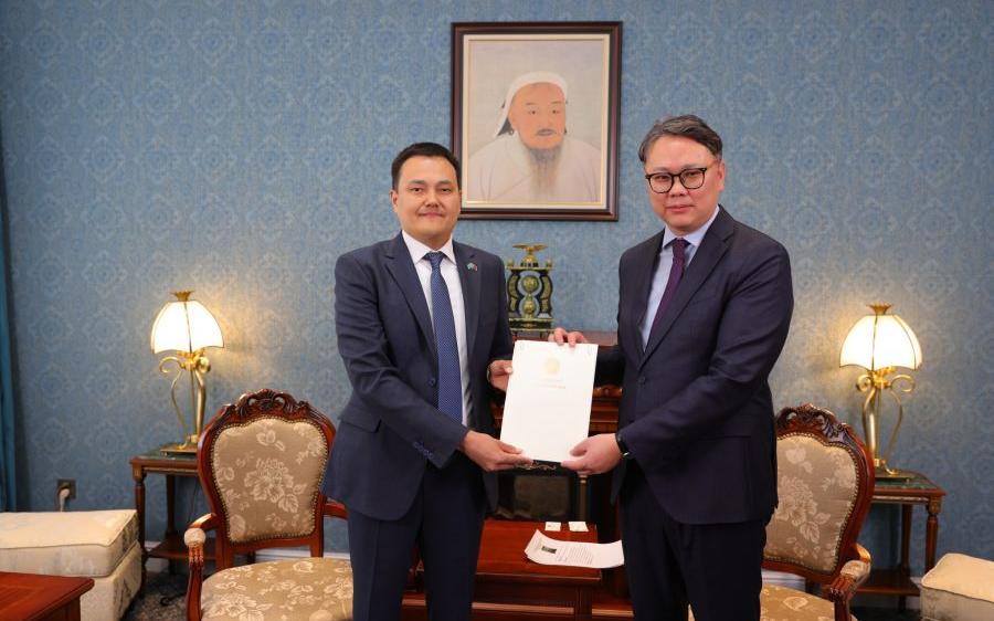 蒙通社乌兰巴托6月5日电,据外交部新闻办消息,哈萨克斯坦共和国驻蒙古国大使阿·塞塔科诺夫于6月4日向外交部国务秘书拉·孟和图希格递交国书副本。