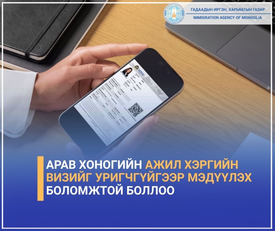 Улаанбаатар, 2025 оны арванхоёрдугаар сарын 8 /МОНЦАМЭ/. Монгол Улсад ажил хэргийн шугамаар түр ирэх гадаадын иргэнд К1, А3 ангиллын арав хоногийн визийг уригчгүйгээр цахимаар олгох боломж бүрдүүллээ.