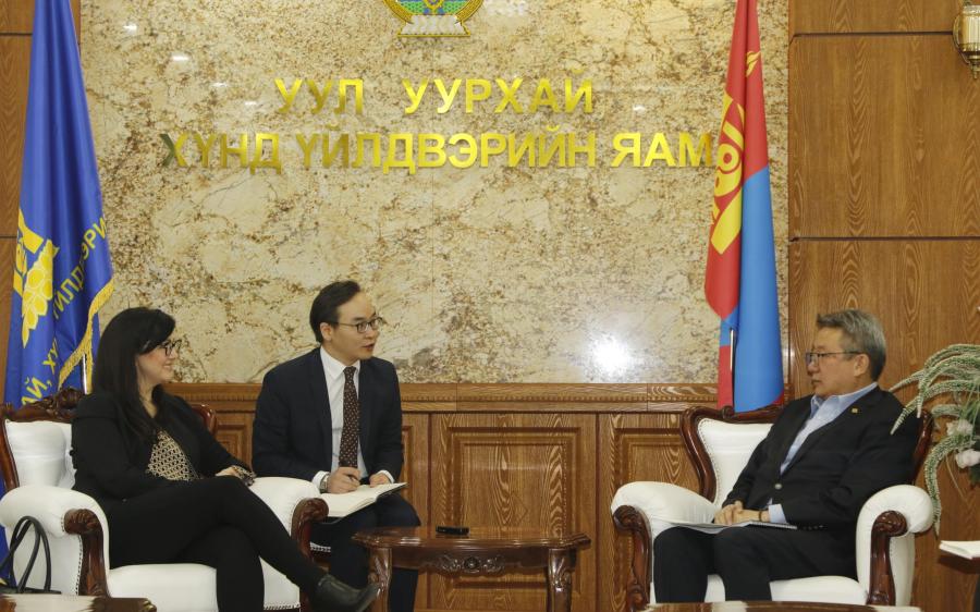 Улаанбаатар /МОНЦАМЭ/. Уул уурхай, хүнд үйлдвэрийн сайд Г.Ёндон “Оюу толгой” ХХК-ийн гүйцэтгэх захирал Дэйрдрэ Лингенфэлдерийг хүлээн авч уулзав.