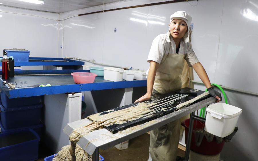 Засгийн газраас хэрэгжүүлж буй “Хот, хөдөөгийн сэргэлт” бодлогын үр дүнд нийслэлээс орон нутагт үйл ажиллагаа явуулахаар шилжсэн аж ахуйн нэгжүүд хөнгөлөлттэй зээлд хамрагдах боломж бий. Энэ хүрээнд “Мөнхкейзинг” ХХК-ийн үүсгэн байгуулагч, гэр бүлийн хоёр ЖДҮХС-гаас 3 хувийн хүүтэй 50 сая төгрөгийн зээлийг авч, ажлын байр, цехийн хөргүүрээ байгуулан гүнийн худгаа гаргаад байна. Мөн өлөн боловсруулах ажлаа энэ оны 10 дугаар сараас эхлүүлж, нэг сарын хугацаанд 500 багц өлөнг Улаанбаатар хотын экспортлогч компаниуд руу нийлүүлээд байгаа аж. Өлөн гэдсийг таван дамжлагаар боловсруулах бөгөөд 100 метрээр нэг багц болгон давсалж боодог байна.