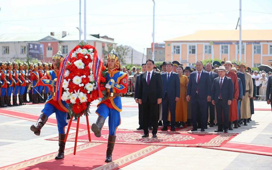 Ulaanbaatar, July 29, 2025 /MONTSAME/. President of Mongolia Khurelsukh Ukhnaa paid tribute and laid a wreath at the statue of former leader Marshal Tsedenbal Yumjaa during his participation in the celebration marking the historic 100th anniversary of the founding of Uvs aimag.