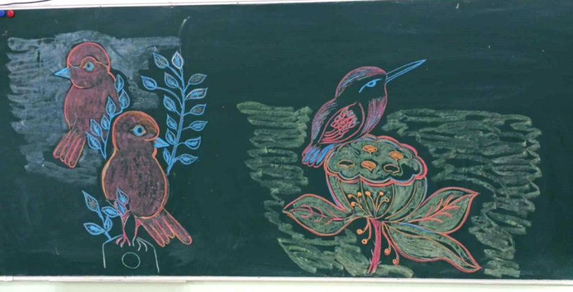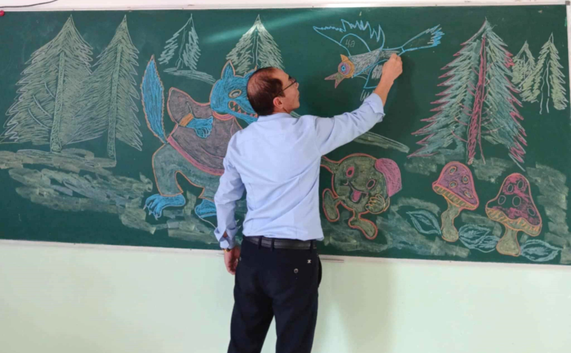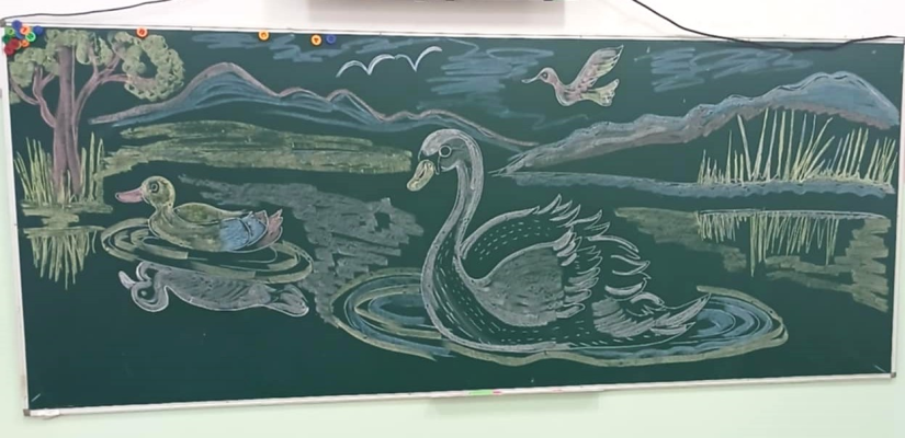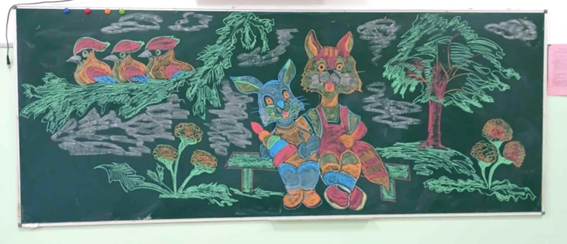 Л.Бадамболор багш дүрслэх урлаг болон бусад хичээлийн хоорондын уялдаа, агуулгын холбоо хамаарлыг зургаар илэрхийлэх үүднээс өнгөрсөн хичээлийн жилд 25-30 орчим цагийн хичээлийг самбарын зургаар таниулжээ.