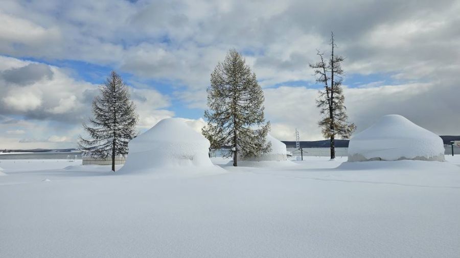 Хөвсгөл нуурын эрэг дагуу жуулчны баазууд цасанд хучигджээ. Цасны зузаан зарим газруудад 1 метр гаруй байна.