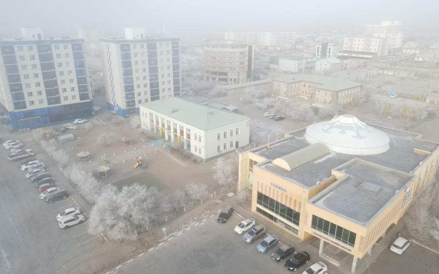 Сайншанд, 2026 оны нэгдүгээр сарын 5 /МОНЦАМЭ/. Дорноговь аймгийн Сайншанд сумын нутагт 2026 оны нэгдүгээр сарын 5-ны өглөө манан, утаа холилдсон байдалтай байна.