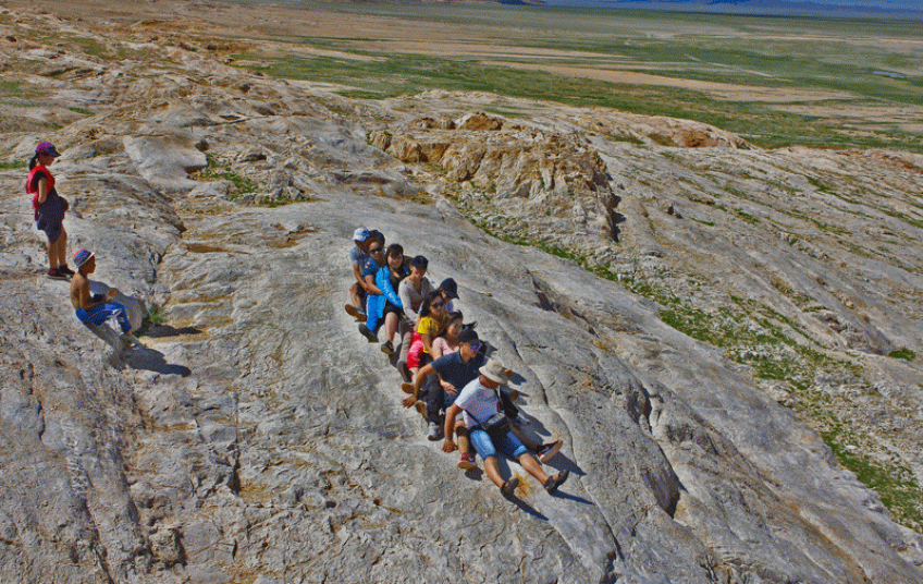 Баянхонгор, 2026 оны нэгдүгээр сарын 14 /МОНЦАМЭ/. Хүүхдүүд гулгасаар байгаад хадыг хонхойлгон мөлгөр гадаргуутай болгосон болов уу гэмээр гулсуур хад, 3-4 хүүхдийн гишгэж явсан мөр бүхий хадны хонхрууд, хаданд хэв гарган бүтээсэн хэвтэж буй хүүхдийн дүрс зэрэг олон содон зургийг Цагаан хаднаас харж болно.