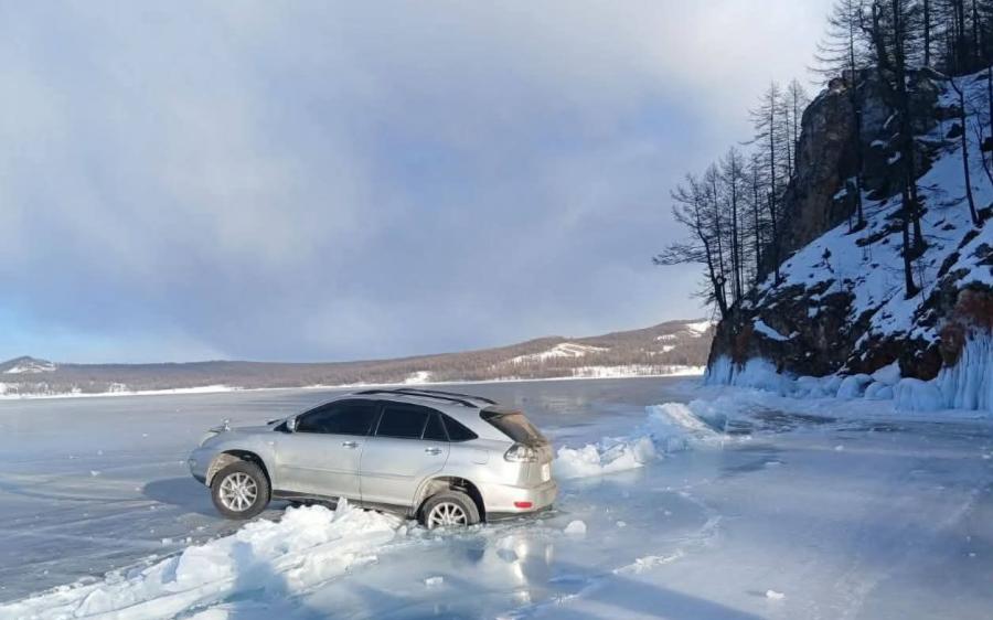 Хөвсгөл нуурын цагаан хилд цөмөрсөн авто машиныг татан гаргажээ