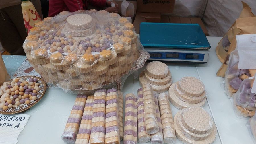 Үзэсгэлэн худалдаанд оролцогчид ноос, ноолуур, арьс, шир, сүү, сүүн бүтээгдэхүүн, мах, махан