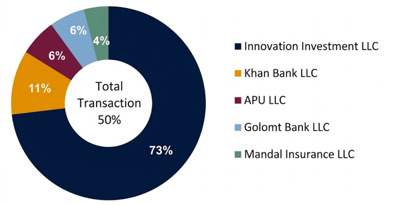 - Innovation Investment JSC (QPAY) — 33.1 million securities traded at MNT 270 per unit, totaling MNT 8.9 billion;