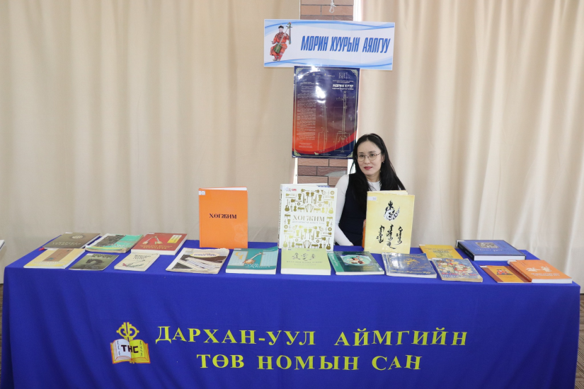 Өдөрлөгийн хүрээнд аймгийн Төв номын сангаас морин хуурын түүх, төрөл зүйл, хийц загвар, морин хуурын ноот бүхий 19 боть ном, 30 үзүүлэн таниулах материалаар “Морин хуурын аялгуу” үзэсгэлэнг дэглэж, сургагч багш нар болон морин хуур сонирхогч суралцагч хүүхдүүдэд танилцууллаа.