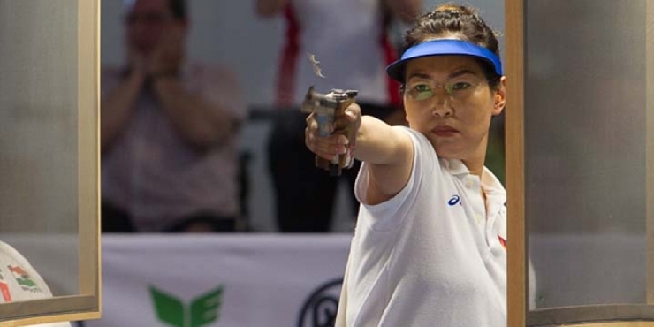 今回のアジア選手権の女子10メートルエアピストルで38人の選手が競って、O.グンデグマーさんは予選を383点で通過した。