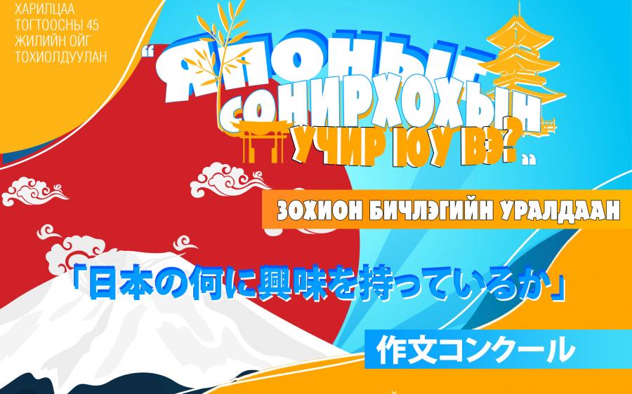 国営モンツァメ通信社はモンゴル・日本文化交流取決め45周年記念に当たって、在モンゴル日本大使館、モンゴル・日本親善協会の後援で、 モンゴルにおける日本語を学ぶ高校生を対象に第1回作文コンクールを主催する。