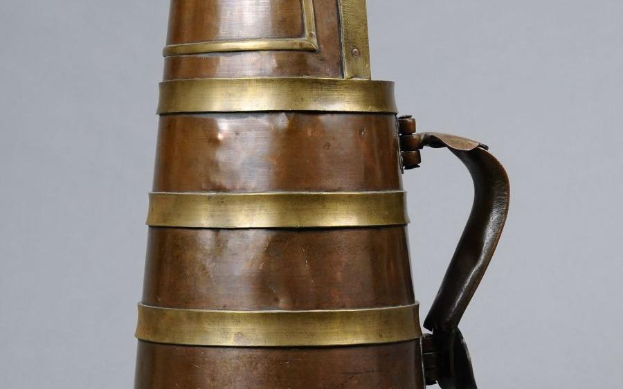 セレンゲ県の博物館に保存されているこのドンボ(ポット)の胴体は銅製で、胴体の装飾として6つの真鍮ベルトを使用した細工ものであ る。ドンボの容量は10㍑で、比較的大きい。高さは57cm、底の直径は26cm、重さは6655gである。ドンボは通常、ミルクティ(スーティー・ツァイ)を入れて、椀に注ぐのに使われる。ドンボにある口注ぎ部は、椀への注ぎやすさのための形状である。鍋で一度に大量に作るミルクティーを椀に注ぎ分けるのに使うだけでなく、このドンボに入れたままストーブの上に置いておけば保温あるいは再加熱もできる。