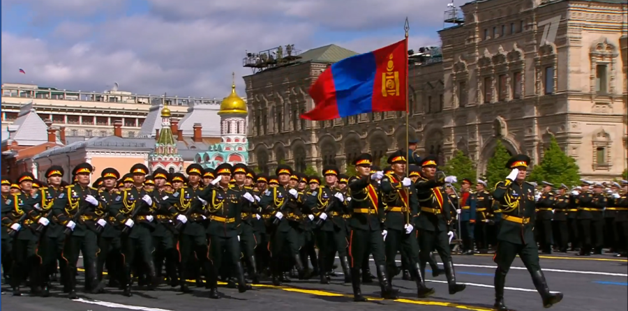 この記念の軍事パレードに、モンゴル国軍部隊が参加したことを言及すべきである。具体的には、モンゴル国軍の兵士たちは4月25日にロシアに到着し、国防省管轄の「ズヴェニゴロドスキー」軍用保養施設に、カザフスタン、タジキスタン、トルクメニスタンの軍部隊と共に滞在し、訓練を行った。