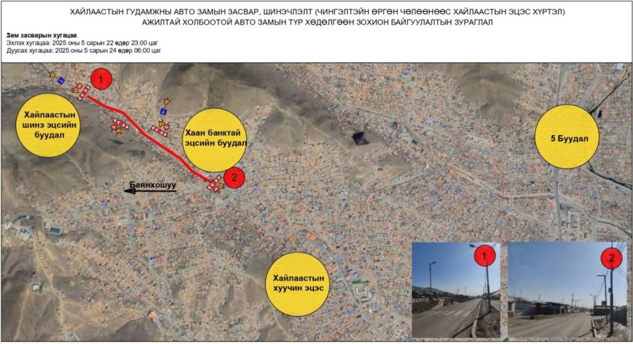 (ウランバートル市、2025年5月22日、国営モンツァメ通信社)ウランバートル市内のチンゲルテイ通りからハイラースト終点までの約4㌔の区間において、道路修理工事が実施されることに伴い、該当区間は3か所で部分的に通行止めとなる。