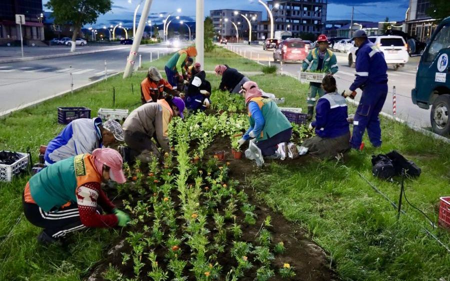 (ウランバートル市、2025年6月30日、国営モンツァメ通信社)今年、県中心部では緑化と景観向上を目的に、種まきおよび苗植えを通じて公共スペースに1万本以上の花が植えられている。
